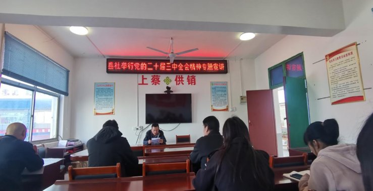 10月22日上午,上蔡县供销合作社举行党的二十届三中全会精神专题宣讲会。县供销社党组书记、理事会主任王付德同志作宣讲,机关全体党员参加了学习。