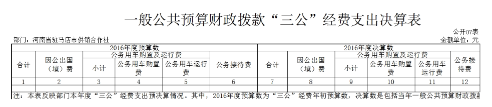 (七)2016年度一般公共预算财政拨款“三公”经费支出决算表